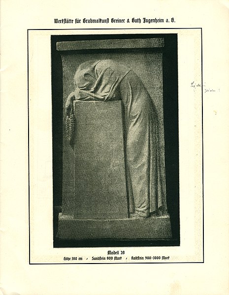 Daniel Greiner, der 1903 zur Künstlerkolonie stieß und in seinen drei Jahren auf der Mathildenhöhe auch mit Habich zusammengearbeitet hat, etwa an dem großen Bacchus-Brunnen an der Ostflanke des Platanenhains, hat sich nach dem Verlassen der Künstlerkolonie sogar ganz auf das Metier Friedhofskunst konzentriert. Der studierte Theologe und Doktor der Philosophie, der sich 1901 mit der Kirche überwarf und aus ihr austrat, ließ sich nach dem Intermezzo auf der Mathildenhöhe 1906 in Jugenheim an der Bergstraße, Richtung Stettbacher Tal nieder. Dort gründete er auch die „Werkstätte für Grabmalkunst Greiner und Guth“.