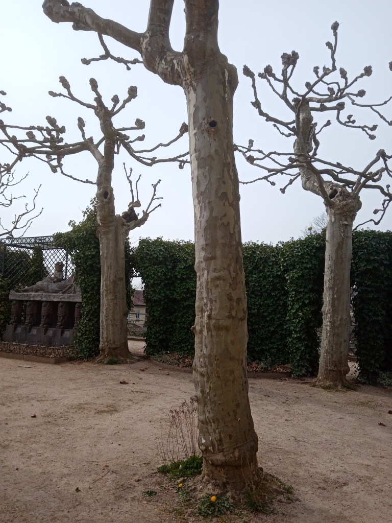 So haben es etwa diese drei Platanen direkt vor dem Denkmal der „Sterbenden Mutter mit Kind“ – die Bäume Nr. 68 links und Nr. 67 rechts hinten sowie vorne der Baum Nr. 66 – doch noch geschafft und sind von der Liste der geplanten Fällungen aus vorwiegend denkmalpflegerischen Gründen in der letzten Entscheidungsphase gestrichen worden.