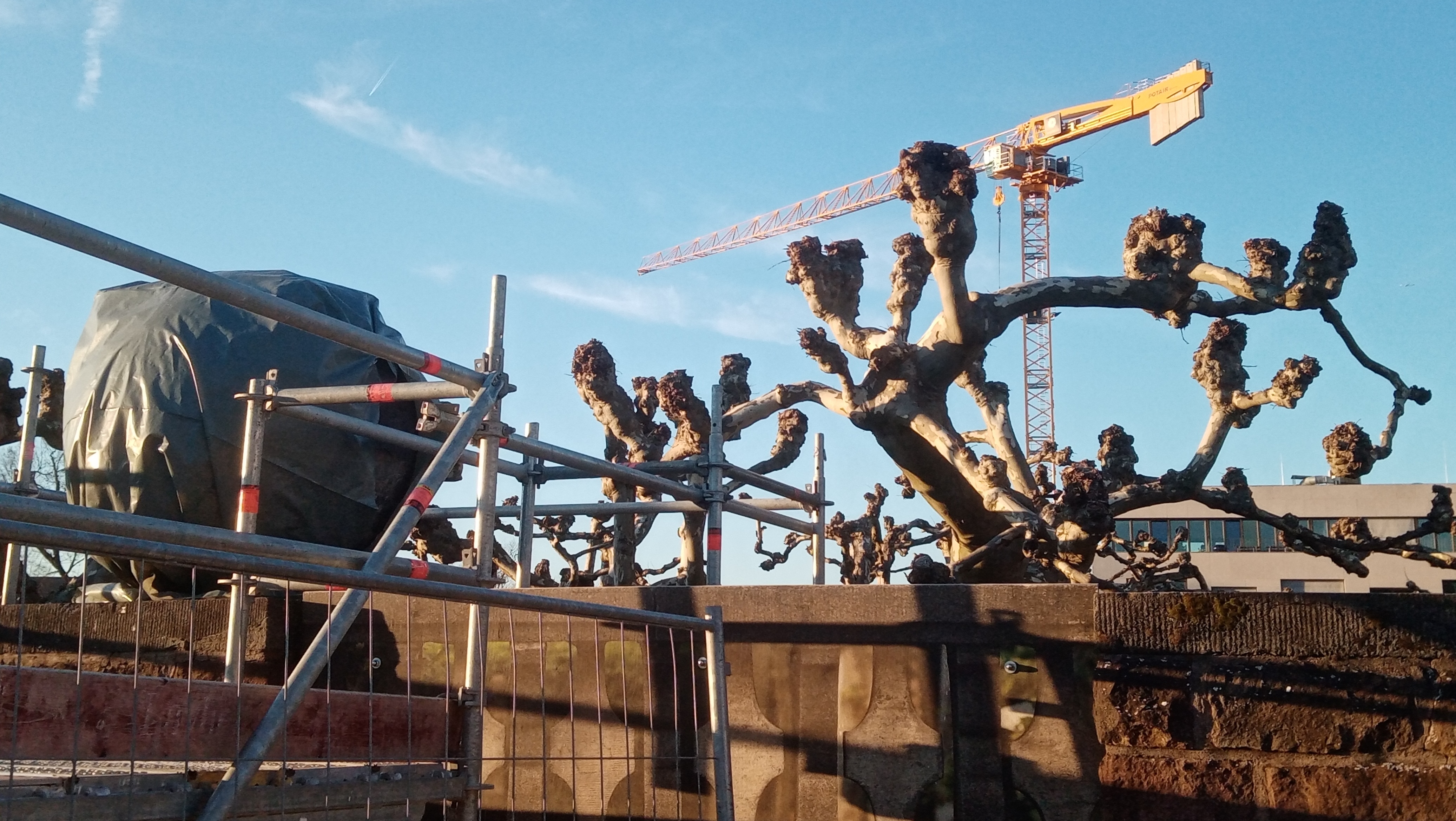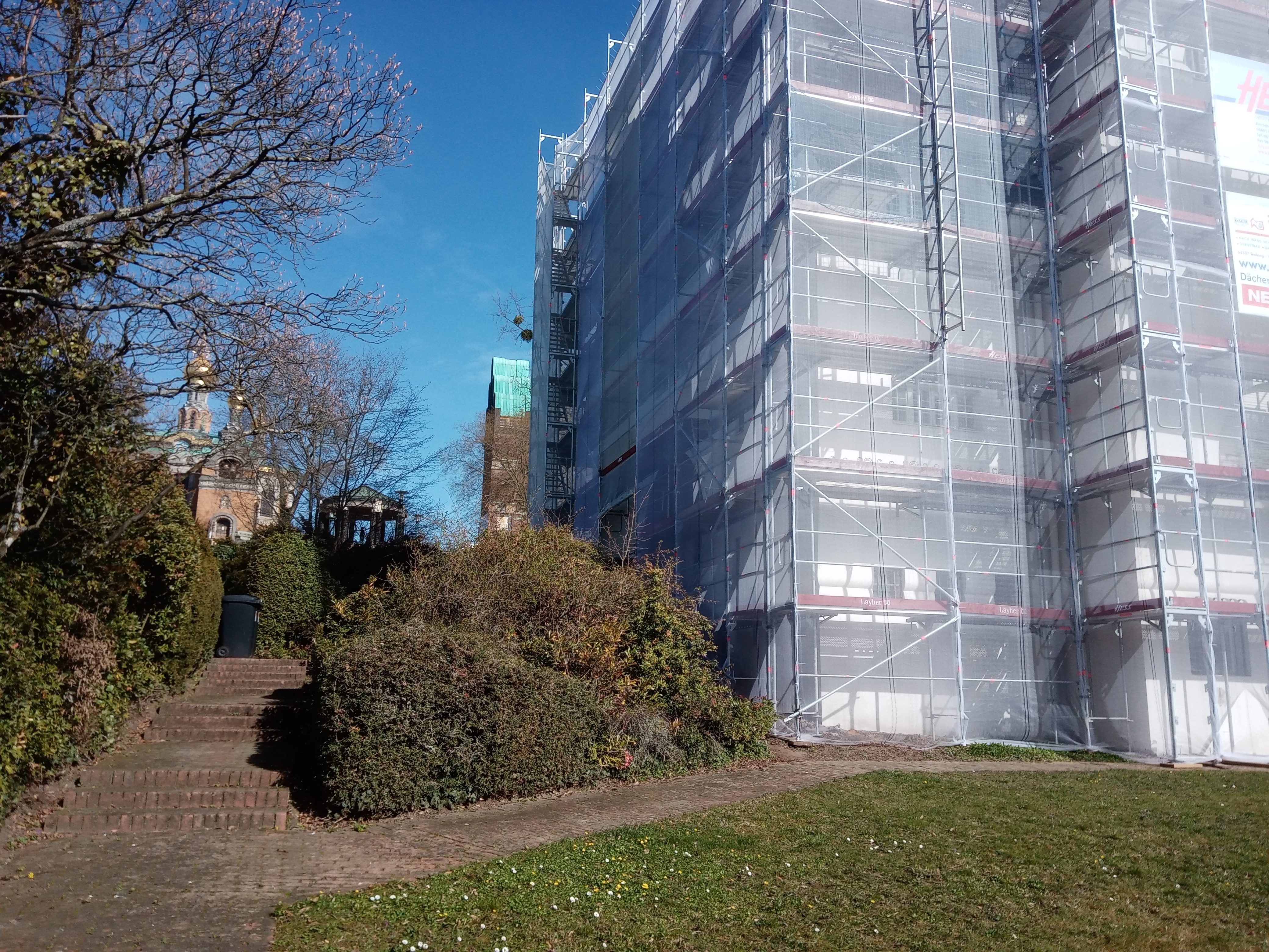 Februar und Fastnacht: Das ist traditionell der Monat und die Zeit der Reinigung. Zwischenzeit. Das alte Jahr ist nun tatsächlich Vergangenheit, vorbei. Das neue hat noch nicht so ganz begonnen. Daher hier ein letzter Blick zurück auf die schönsten Baustellen-Momente von der Mathildenhöhe. Darmstadts Weltkulturerbe war vor allen Dingen 2022 vielerorts verhüllt, versperrt und eingerüstet. Danach machen wir aber ganz schnell die Augen zu und freuen uns auf unser bald komplett saniertes Schmuckstück. Denn in 2023 wird sie so glänzen und strahlen wie nie, unsere Mathildenhöhe!