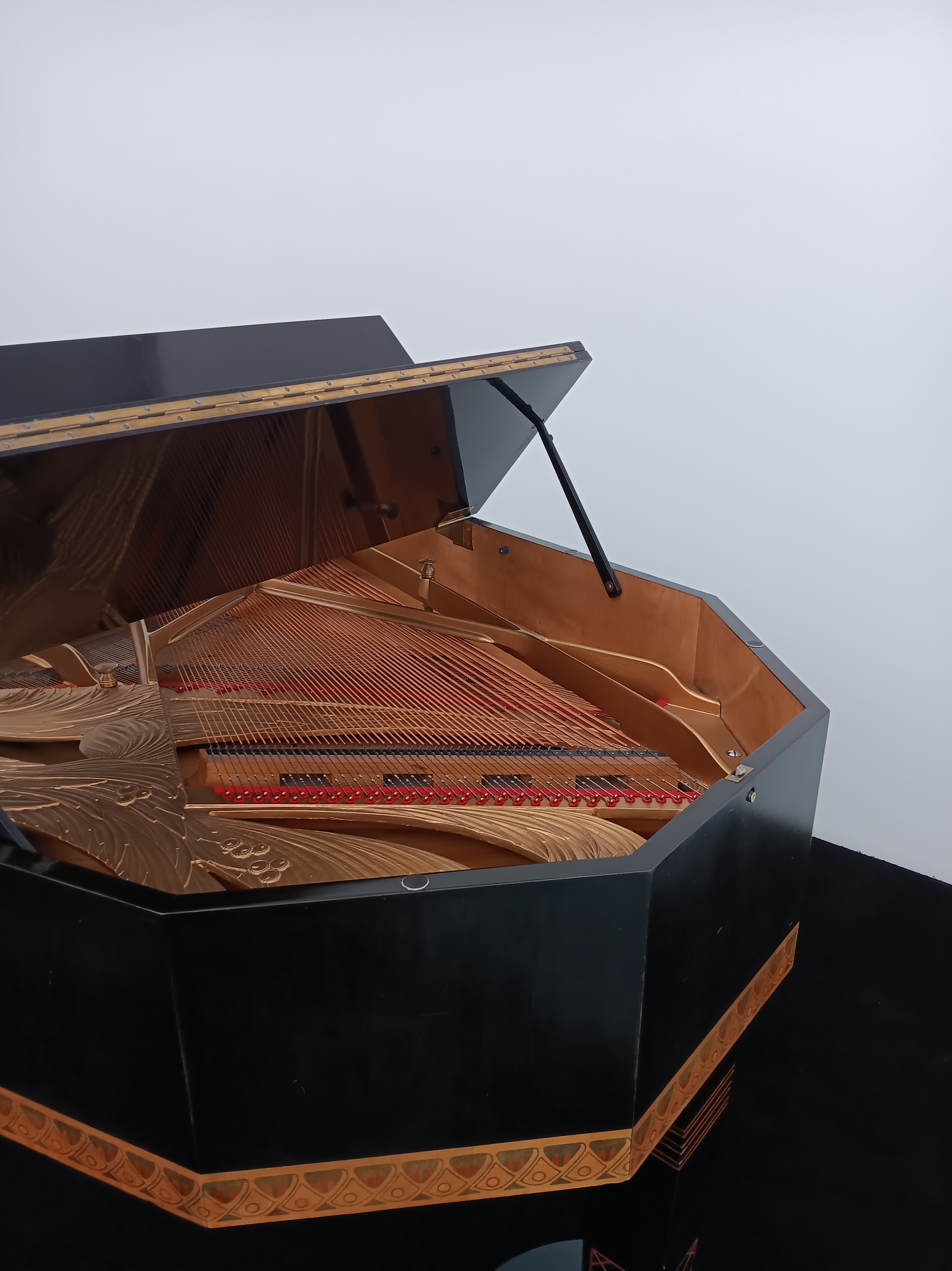 Eigentlich ist dieser spezielle Flügeltyp gar kein richtiger Flügel, denn ihm fehlt die charakteristische Flügelform, die dem Instrument überhaupt erst seinen Namen gegeben hat. Dieser Flügel hat acht Ecken und ist das Ergebnis einer Zusammenarbeit von Joseph Maria Olbrich mit der vielfach prämierten Klavierbaufirma Mand aus Koblenz. Für die technische Innovation und die neue achteckige Form wurde vom Hersteller sogar ein Patent angemeldet.
