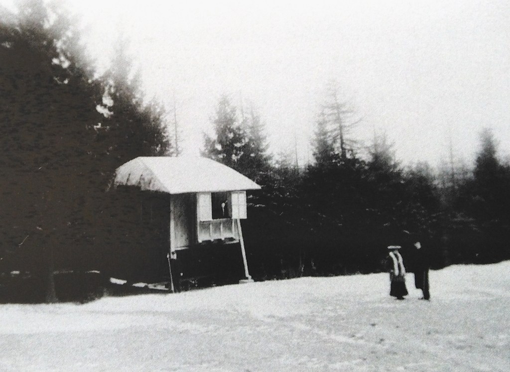 1905, Braunlage im Harz. Hier, auf dem Gelände des Sanatorium Dr. Barner, trotzt eine kleine Architektur aus Holz dem vielen Schnee des Winters. Zu sehen ist die „Licht- und Lufthütte“, die Albinmüller, der von 1908 bis 1914 der leitende Architekt der Künstlerkolonie auf der Mathildenhöhe in Darmstadt war, am Waldrand idyllisch als Hochsitz auf Stelzen positioniert hat. Sie hat Geschichte geschrieben, denn es dürfte wohl das erste Tiny House Deutschlands gewesen sein.