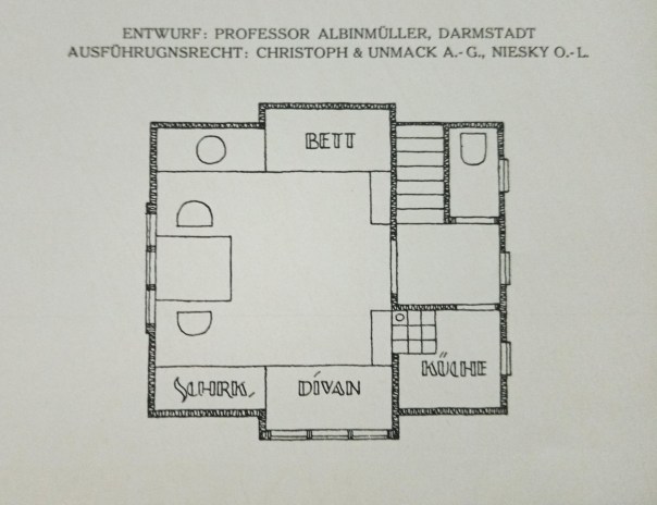 Sie wurde von der Firma Christoph & Unmack gebaut, die Anfang des 20. Jahrhunderts auch andere Holzbauten von Albinmüller herstellte, wie etwa das zerlegbare Ferienhaus, das auf der 4. Ausstellung der Künstlerkolonie 1914 gegenüber vom Haus Behrens in Darmstadt zu sehen war und ebenfalls eine Innovation modernen Bauens darstellte. Heute erstreckt sich dort noch leicht erhöht von der Straße die Pergola des ehemaligen, dem Fertighaus vorgelagerten Gartens.