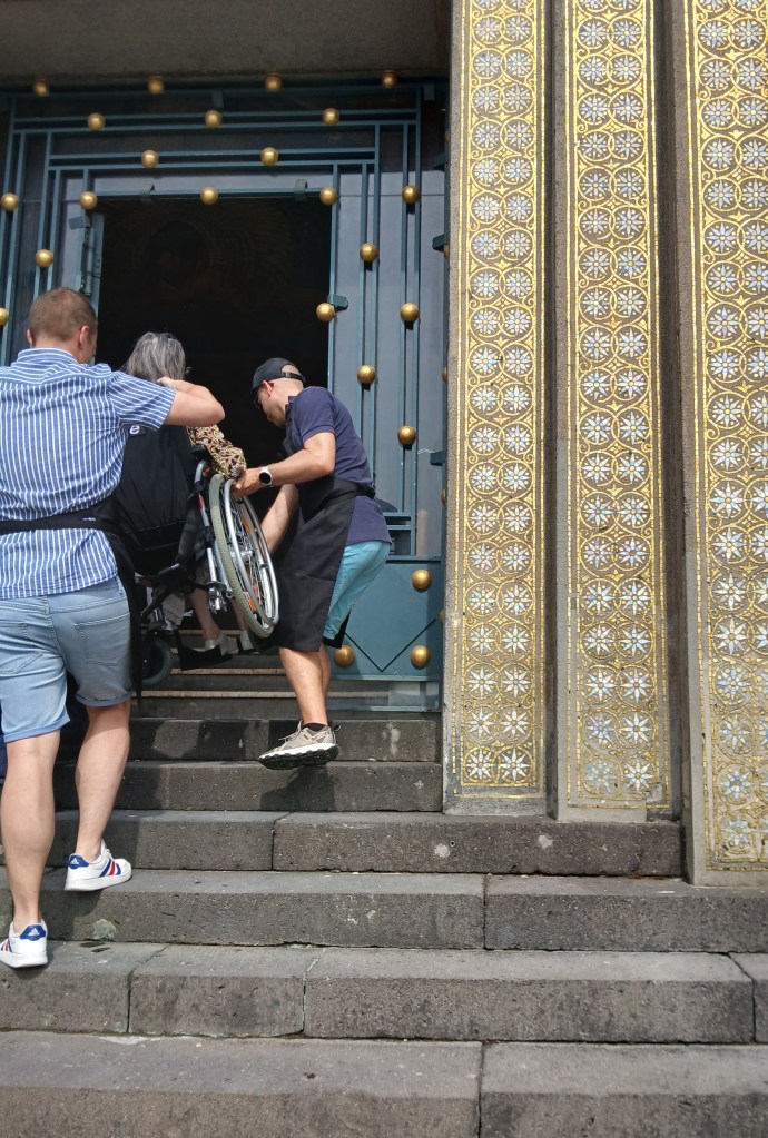 Haben etwa behinderte Personen nicht das Recht, auf den Besuch der Mathildenhöhe? Sollte man nicht auch als nicht so mobiler Mensch, ob mit Rollator, Stock oder Kinderwagen, die Möglichkeit haben, auf dem UNESCO-Welterbegelände, das in Hinblick auf Barrierefreiheit ein schwieriges ist, bequem empfangen und betreut zu werden?