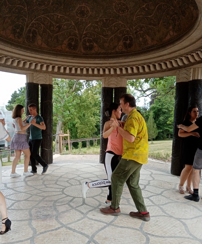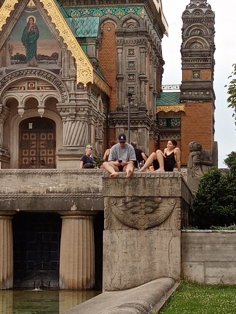 Die Mathildenhöhe Darmstadt ist nicht nur Hochkultur. Hier blüht zwischen dem einzigartigen Ensemble aus Architektur, Gartenlagen und Skulpturen jetzt im Sommer das pralle Leben: Ein junges Paar entspannt am Lilienbecken, die „Kochenden Männer“ legen einen Stopp beim Hochzeitsturm ein, unablässig beziehen die Besuchergruppen vor dem goldenen Omega-Portal des Ateliergebäudes Position. Der Schwanentempel mit seiner blendenden Akustik wird kurzerhand zum Tango-Tanztempel während es die Boulespieler im Platanenhain eher französisch gelassen angehen. In den temporären Bauten der Gastronomie, den beiden Biergärten im Platanenhain und unter den hohen Bäumen des Osthangs, laden viele sonnige und auch schattige Plätzchen zum Verweilen und Genießen ein. Und selbst die Polizei genießt ihre Streife an diesem außergewöhnlichem Einsatzort, in dem selbst Baustellen schön aussehen. Friede, Freude, Sonnenschein.