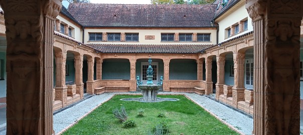 Sehr inspirierend hat auf ihn wohl eine Italienreise gewirkt, auf die ihn der Großherzog gleich zu Beginn schickte. Zusammen mit dem leitenden Architekten der Bad Nauheimer Anlage, Wilhelm Jost, und seinem Darmstädter Kollegen, dem Keramiker Jakob Julius Scharvogel, reiste er in den Süden. Ihr Auftrag: Anregungen für die Gestaltung und Ausschmückung der im Bau befindlichen Badeanlagen zu gewinnen. Der ganz in Terrakotta gestaltete Innenhof ist das sichtbare Ergebnis dieser italienischen Eindrücke.