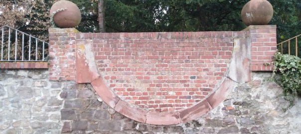 Er muss fantastisch gewesen sein, der Blick von hier hinauf zum Ernst-Ludwig-Haus. Denn dieses Halbrund in der Mauer war einmal der Endpunkt eines bezaubernden Architekturgartens, der in mehreren Terrassen vom hoch gelegenen Atelierhaus der Künstler hinunter zum Prinz-Christians-Weg führte. Wo heute eine Wand aus gemauertem Backstein die Lücke füllt und dichte Nadelhözer eine Durchsicht verwehren, rahmten Pflanzen und Bäume eine Sichtachse, die das Rückgrat für die berühmte erste Ausstellung der Künstlerkolonie von 1901 bildete. Entlang dieser setzte Architekt Joseph Maria Olbrich seine epochal neuen Jugenstil-Villen. Schlusspunkt einer Achse: Backstein statt roter Rosen weiterlesen →