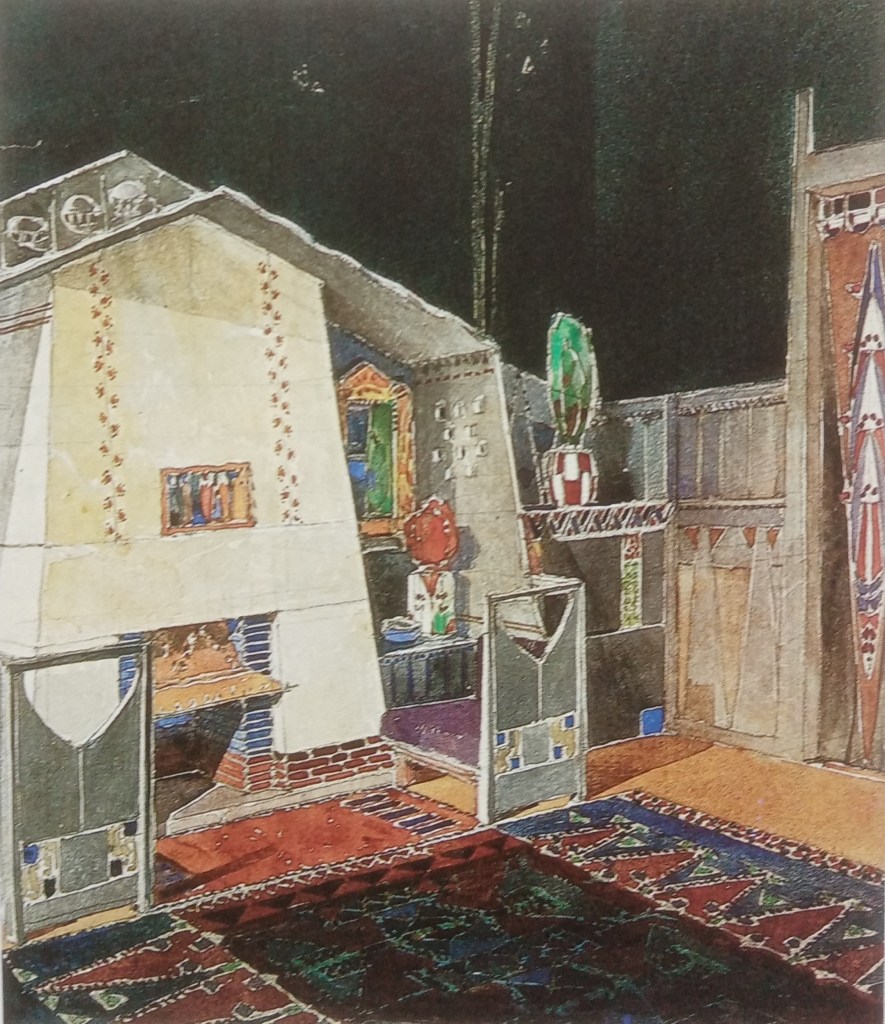 Jetzt wird es kuschelig und warm! Schließlich ist Winter – und so versammelt 23 Quer nun alle Leser:innen um den Kamin. Denn um den geht es in diesem Beitrag, und die besondere Rolle von Kaminen in den Künstlervillen auf der Mathildenhöhe. Ein ganz besonders schönes Exemplar hat Joseph Maria Olbrich für sein eigenes Haus entworfen. Sein wie immer wunderbares Aquarell zeigt viele Details und vermittelt mit einer enormen Farbigkeit das wohnliche Raumgefühl dieses einladenden Wohnobjekts. Olbrich hat hier eine ganze Kaminwand entworfen, die optisch wie ein kleines Häuschen im Haus Olbrich gestaltet ist.