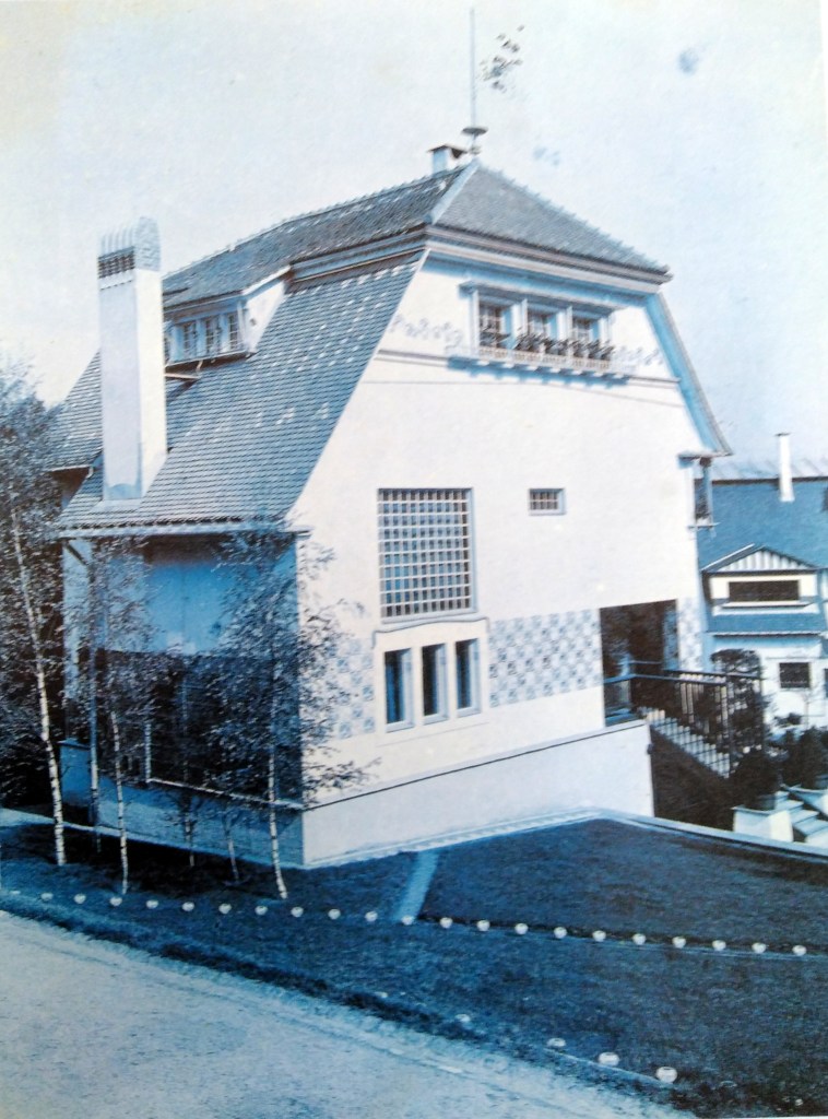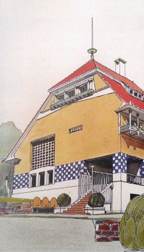 Wer hätte das gedacht? Die so prägenden wie berühmten senkrechten Keramikbänder des Haus Behrens haben die Natur zum Vorbild. Wie Zweige sollen sie sich zum Dach empor ranken. Daher auch das Grün. Die auffälligen Verblendungen können nur diese Farbe haben, keine andere. Denn hier hat die Flora die Architektur inspiriert. Dies kann man jedenfalls den Worten entnehmen, mit denen Peter Behrens den Besuchern der Ausstellung der Künstler-Kolonie in Darmstadt 1901 seine Villa im Detail beschreibt. Zu jedem der ausgestellten Musterhäuser gab es eine kleine Informationsbroschüre, in dem die Künstler das jeweilige Bauobjekt in seinen Grundrissen und Maßen, aber auch die Inneneinrichtung, die beteiligten Möbelhäuser und Handwerksbetriebe vorstellten. Flowerpower III: Behrens formvollendete Synthese weiterlesen →