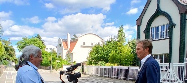 Am Sonntag, den 10. August, macht die beliebte Sendereihe Museums-Check von 3sat Station in Darmstadt: Mit Matthias Matschke auf der Mathildenhöhe heißt es um 18:30 Uhr für die Fernsehzuschauer in Deutschland, Österreich und der Schweiz. Der Schauspieler Matthias Matschke, bekannt aus vielen Fernsehrollen wie etwa der „heute show“ oder der Krimiserie „Professor T.“ ist in Darmstadt zur Schule gegangen, ein Heimspiel also für ihn. Nichts als Liebe empfinde er für diesen Ort, und: „Die Magie ist immer noch da.“ Zusammen mit Moderator Markus Brock spürt er in der dreißigminütigen Sendung dem Geist von Aufbruch und Experimentierfreude, von Moderne und Internationalität um 1900 nach, die damals wie heute die besondere Atmosphäre der Mathildenhöhe ausmacht.